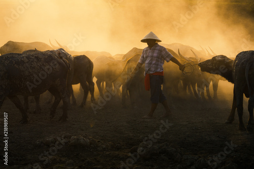 Thai buffalo with farmer