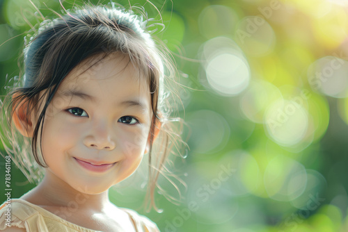 Thai girl smiling in copy-space, showcasing the universal joys of childhood in a Thai context within Asia