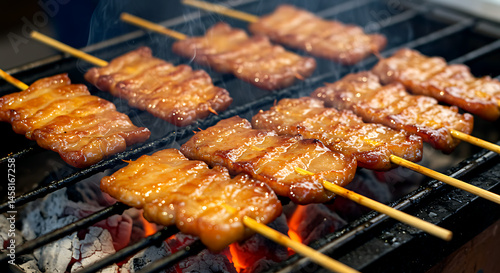 Thai moo ping - caramelized pork skewers with glossy coconut milk glaze