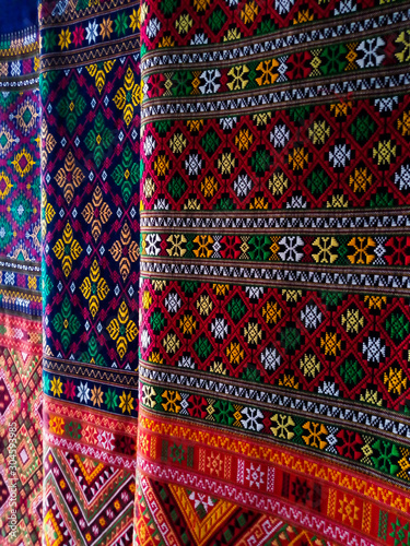 Thai silk fabric - Handmade woven fabrics of Thai silk textiles with traditional decoration ornaments beautiful cultural