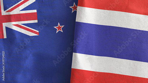Thailand and New Zealand two flags textile cloth 3D rendering