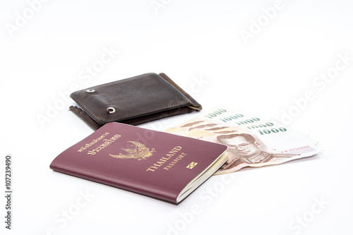 Thailand passport and Thai maney And old wallet.
