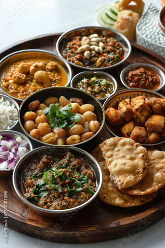 Thali with local goam cashew delicacies like Kaju biyo bhaji, cashew nut fritters, bolo sans rival as dessert.