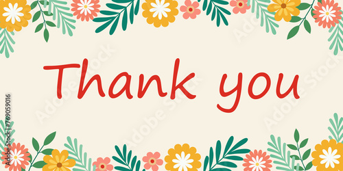 Thank you card with flowers and leaves. Vector Illustration. EPS10