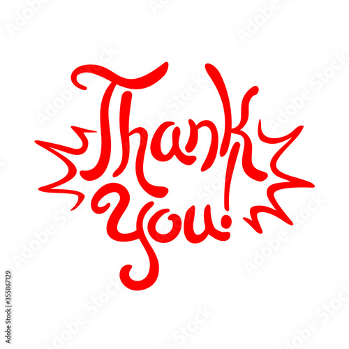 Thank you hand-drawn lettering with comic explosion waves - isolated calligraphic element for gratitude thanksgiving decorations