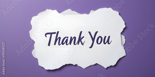 Thank you message card, presentation, business. Expressing gratitude, acknowledgment and appreciation. Minimalist abstract design with white cut out paper on purple background.