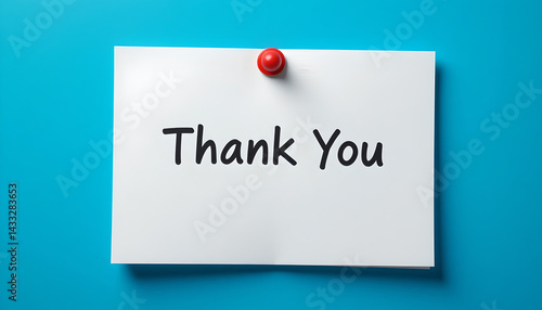 Thank You Note Pinned on Blue Background with Red Pushpin