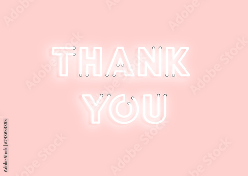 Thank you pink neon electric letters illustration. Concept of advertising for seasonal offer with glowing neon text.