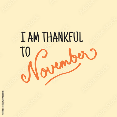 Thankful November. Autumn season banner. Poster, card design with inscription, colorful imprints foliage, lettering phrase.