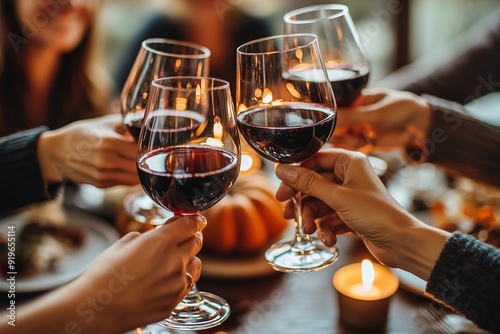 Thanksgiving Celebration: Friends Toasting with Wine at a Beautifully Set Dinner Table
