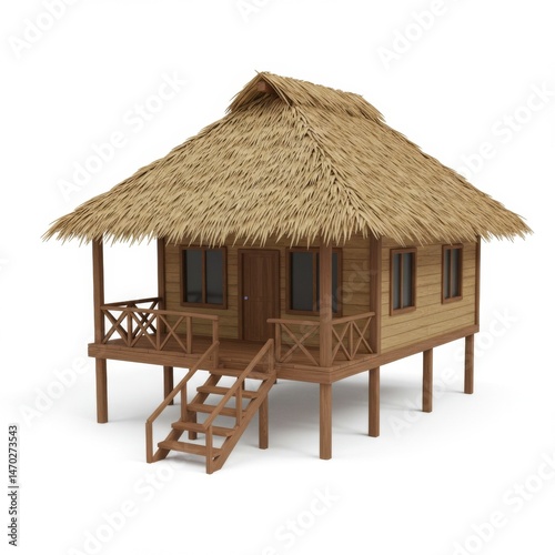 Thatched Roof Tropical Hut Wooden House 3D Render
