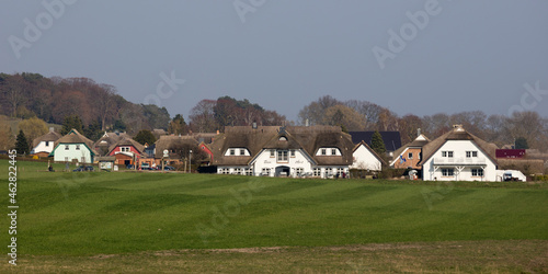Thatched-roof houses, Gross Zicker, Moenchgut, Ruegen, Germany