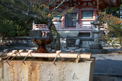 The chozu-bachi in water ablution pavilion (Chozuya) at Chion-in temple complex. Kyoto. Japan