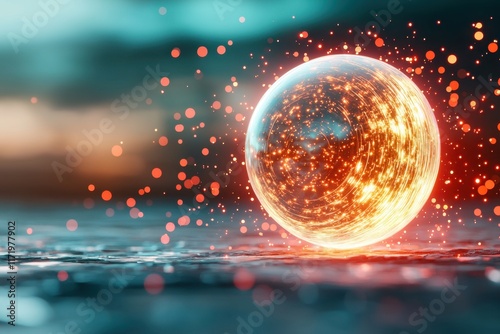 The 3D rendering stock photo features a futuristic portal in the form of a glowing sphere surrounded by vibrant red lights, creating a striking and immersive sci fi visual experience.