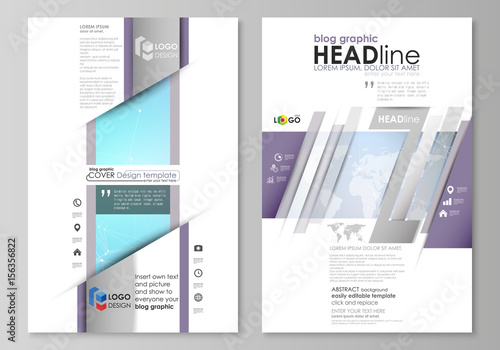 The abstract minimalistic vector illustration of the editable layout of two modern blog graphic pages mockup design templates. Polygonal texture. Global connections, futuristic geometric concept.