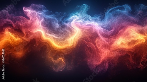 The abstract painting is colorful, with swirls of orange, blue, and purple hues.