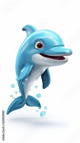 the AI Image Generator, Cute Cartoon Blue Dolphin Figurine with Vibrant