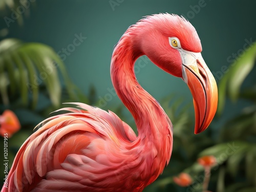 the AI Image Generator, Vibrant Pink Flamingo Standing Gracefully Against
