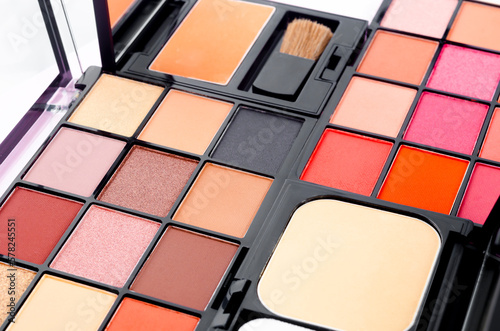 The an opened box of cosmetics - eye shadow with warm colors