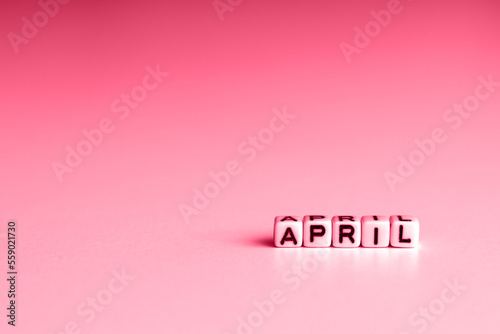 The April image of the January wooden color calendar. Cubes of the "January" icon. The new trend color Viva Magenta 2023