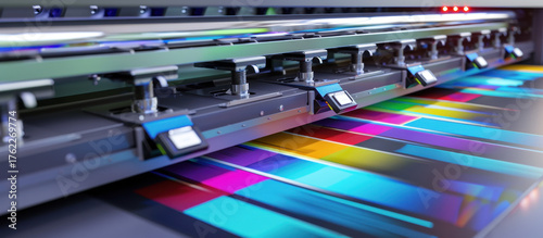 The Art of Precision: A close-up view captures a high-tech large format printer in action, meticulously laying down vibrant colors on a sheet.