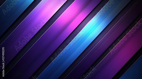 The background features a trendy retro style with abstract diagonal lines and a colorful gradient
