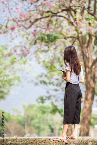 The background of pink flowers, the natural view of the trees with colorful flowers (Chompoophantip) is usually seasonal and according to the cold weather. Is a natural beauty