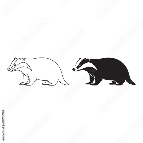 The Badger Outline Pair - Strong Will - Broad Body - Badger silhouette - Badger lineart - Badger vector - silhouette & lineart of Badger