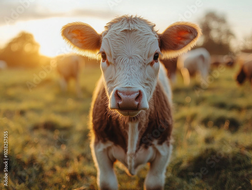 The balance of animal welfare and environmental care in sustainable animal farming, with free-range livestock and green technology.