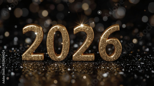 The banner. Happy New Year and Merry Christmas. Shiny numbers from 2026, sequins and a beautiful side on a dark background. The flyer. Invitation.