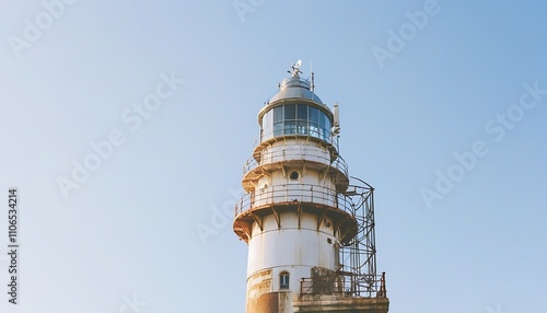 The beauty of ancient lighthouse on the coast and industrial ruins