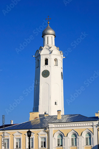 The bell tower of the Sofia Cathedral of the Novgorod Kremlin in Veliky Novgorod, Russia