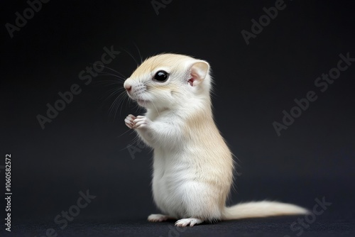the beside view baby Flying squirrel standing, left side view, low angle, white copy space on right, Isolated on black Background