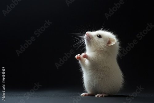 the beside view baby Lemming standing, left side view, low angle, white copy space on right, Isolated on black Background