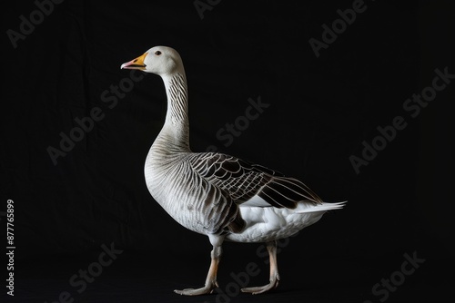 the beside view Bar-headed Goose, left side view, isolated on black background