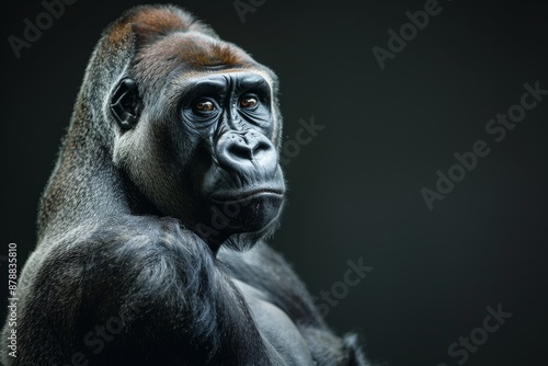 the beside view Mountain Gorilla, left side view, isolated on black background