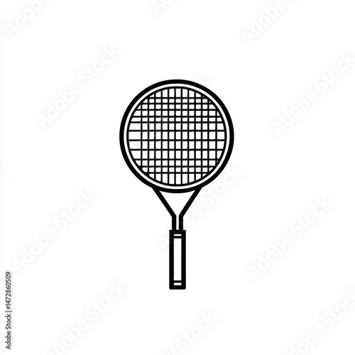 The black silhouette of a badminton racket is matched with a shuttlecock