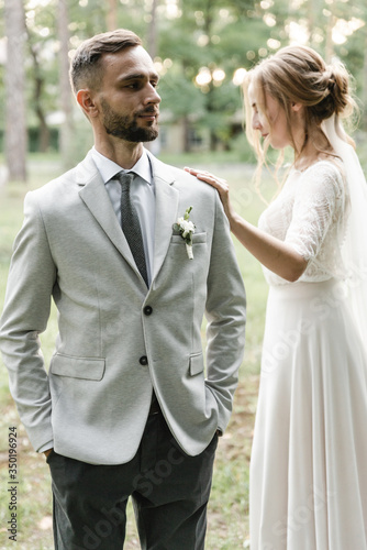 the bride put her hand on the groom,newlyweds wedding holiday,wedding couple