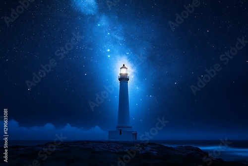 The Bright Lighthouse Stands Under A Starry Night Sky