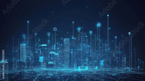 The buildings are adorned with antennas, satellite dishes, and other telecommunication devices, symbolizing connectivity.