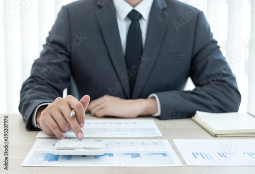 The businessman hand sits at their desks and calculates financial graphs showing the results of their investments planning the process of successful business growth