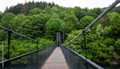 The cable-stayed bridge over the Passarel dam, a great place for a walk very close to the capital Sofia. Bulgaria.