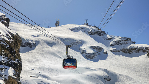 The cableway to mount Titlis over Engelberg on the Swiss alps
