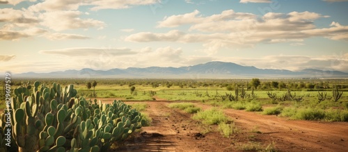 The cactus on the farm is a prominent feature standing tall and proud against the backdrop with ample copy space image availability for photography