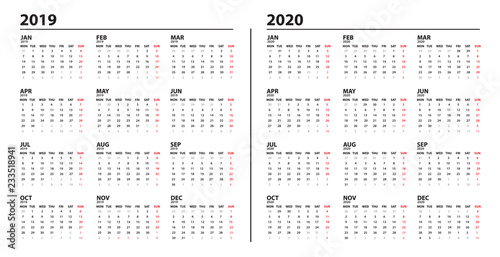 The calendar template 2019 and 2020 year for your design