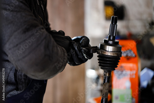 The car wheel shaft mechanic has checked and repaired.