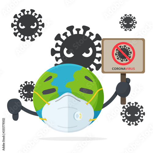 The cartoon world is sick. The world holds a stop sign for the corona virus.