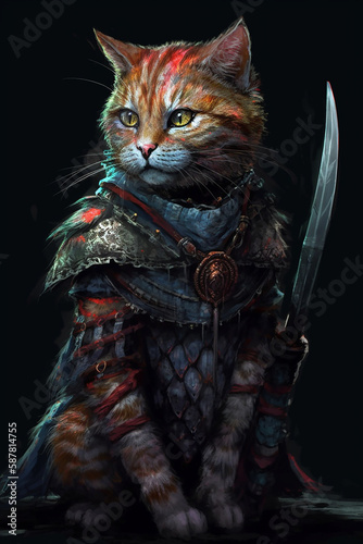 The cat warrior epic pose, generative AI
