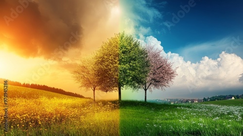 The changes of weather. A natural phenomenon of the differences of four seasons
