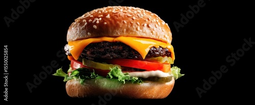 The Cheese Burger with Fresh Vegetables and Classic Ingredients